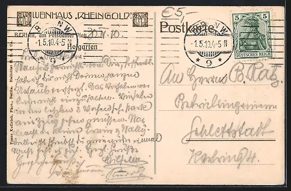 alte Ansichtskarte, gelaufen 1910, Stempelspur, guter Zustand