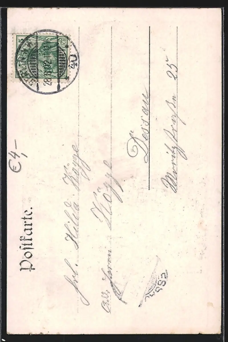 alte Ansichtskarte, gelaufen 1902, Stempelspur, guter Zustand