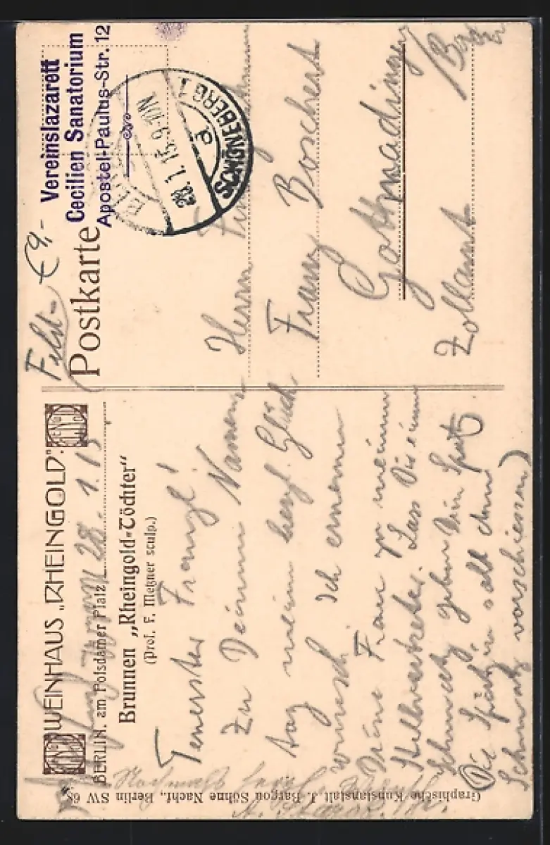 AK Berlin-Tiergarten, Weinhaus Rheingold, Brunnen Rheingold-Töchter