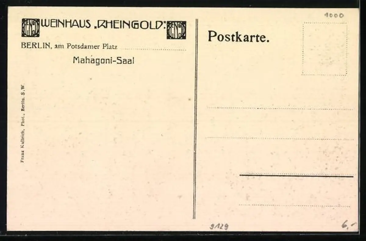 AK Berlin-Tiergarten, Weinhaus Rheingold, Mahagoni-Saal, Potsdamer Platz