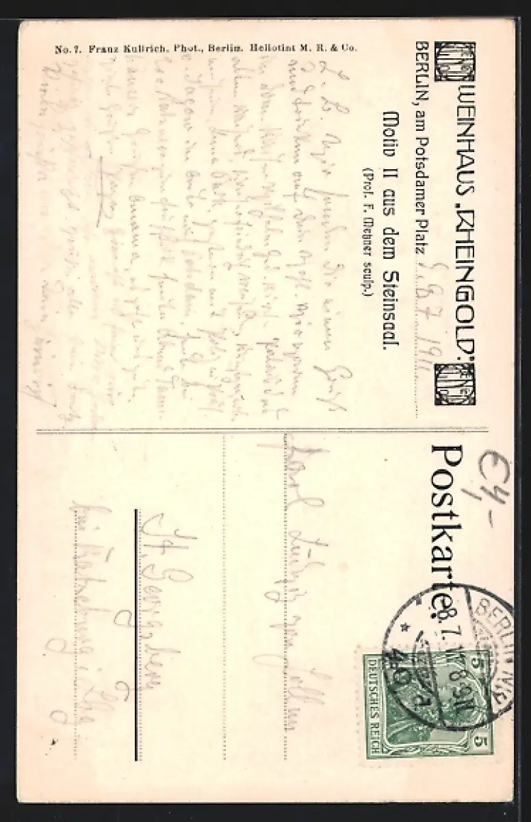 AK Berlin-Tiergarten, Weinhaus Rheingold, Motiv aus dem Steinsaal