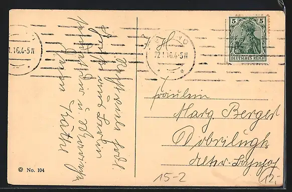 alte Ansichtskarte, gelaufen 1916, Eckknick u. Abriebspuren oben li., Ecken bestoßen, Stempelspur, guter Zustand