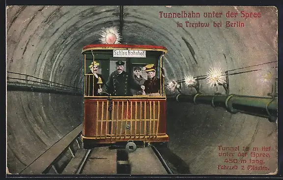 AK Berlin-Treptow, Tunnelbahn unter der Spree