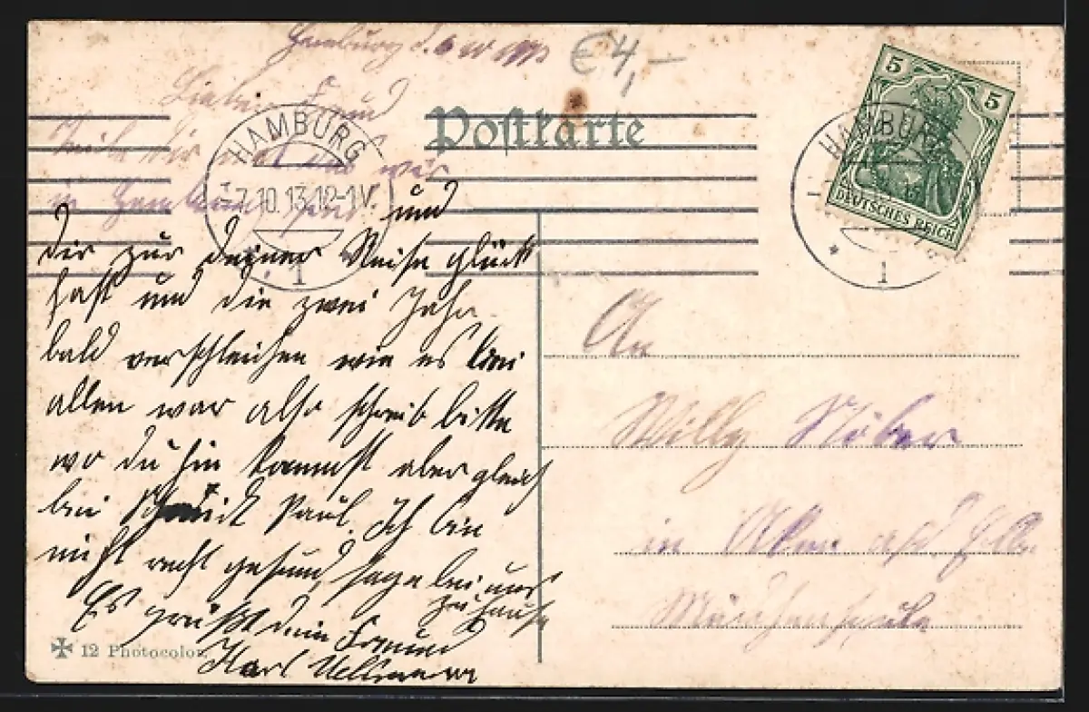 alte Ansichtskarte, gelaufen 1913, guter Zustand
