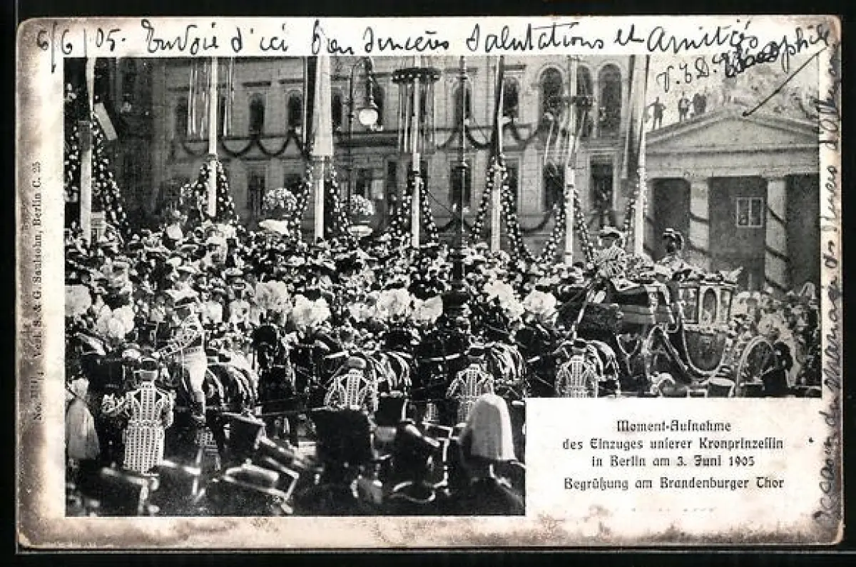 AK Berlin, Unter den Linden, Einzug der Kronprinzessin 1905, Begrüssung am Pariser Platz