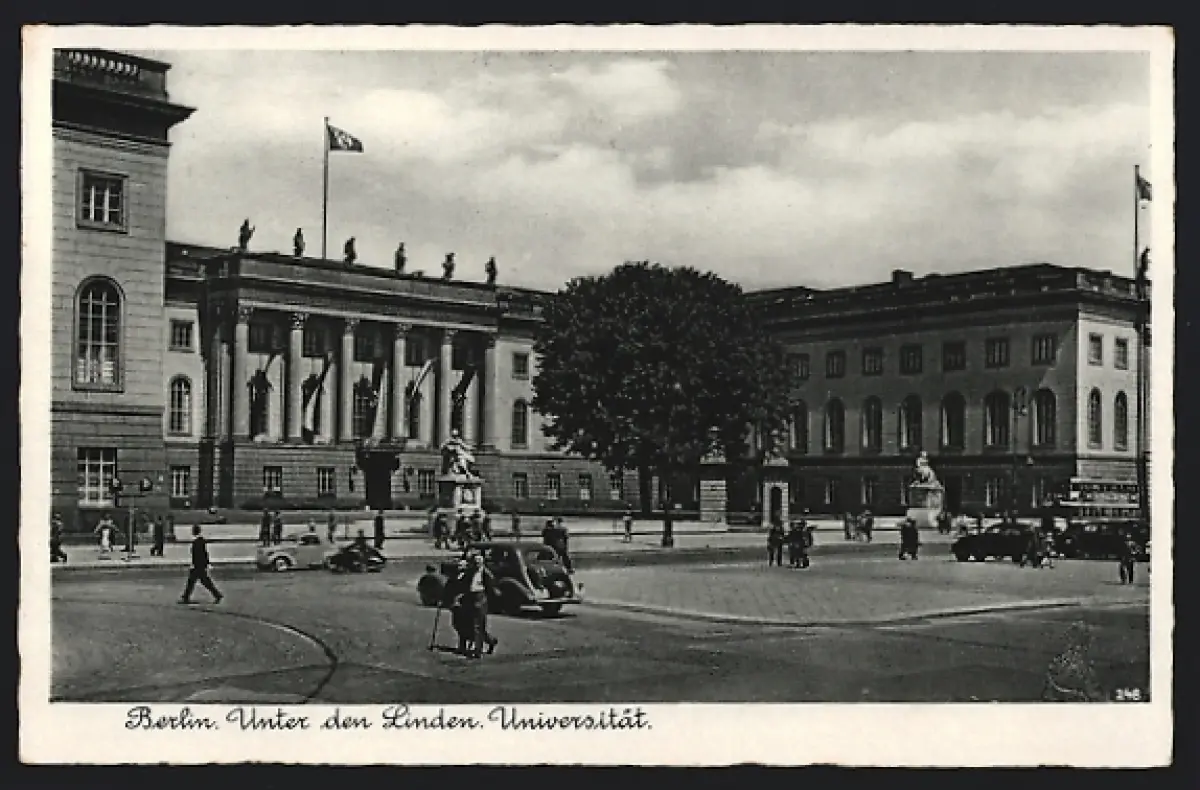 AK Berlin, Unter den Linden, Universität, Autoverkehr, Passanten