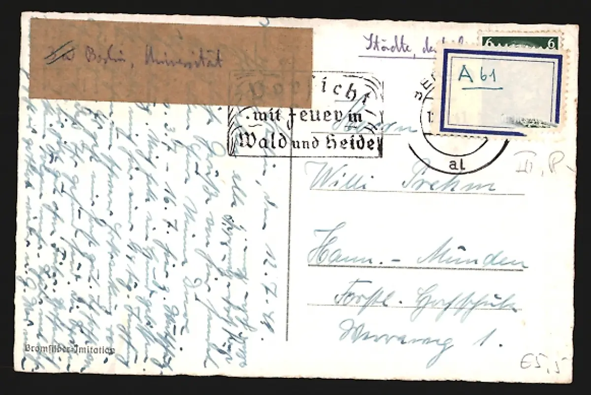 gelaufen 1941, rückseitig Klebe- und Papierreste, guter Zustand
