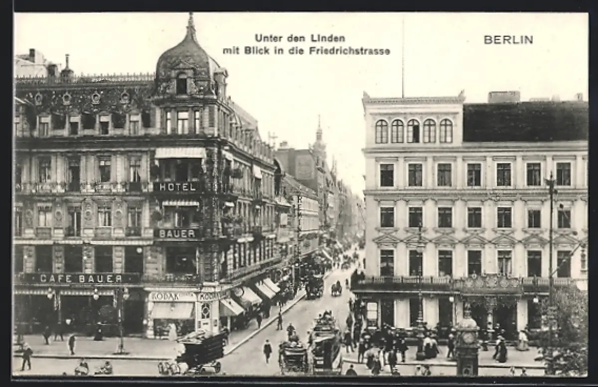 AK Berlin, Unter den Linden mit Blick in die Friedrichstrasse