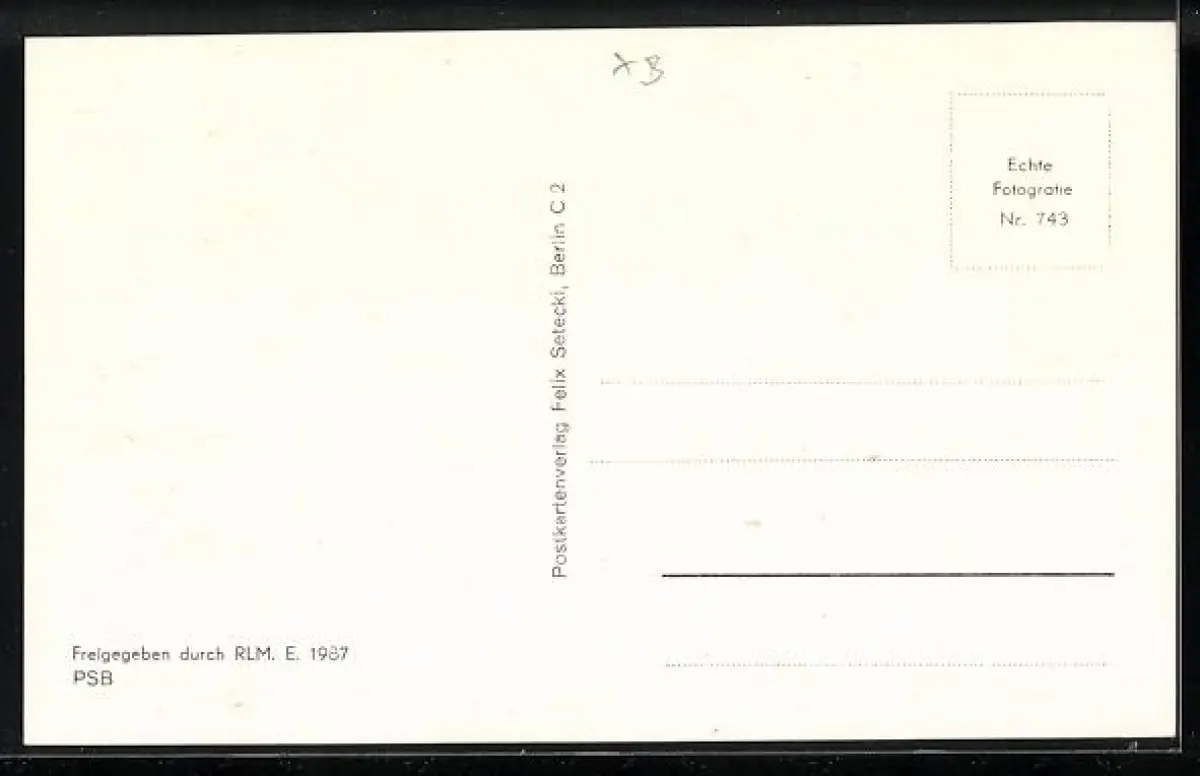 Personenbezogene Daten auf der Rückseite der Karte wurden durch blauen Textmarker unkenntlich gemacht. Die blauen Stellen sind auf die Vorderseite durchgeweicht und wirken sich negativ auf das Postkartenfoto aus