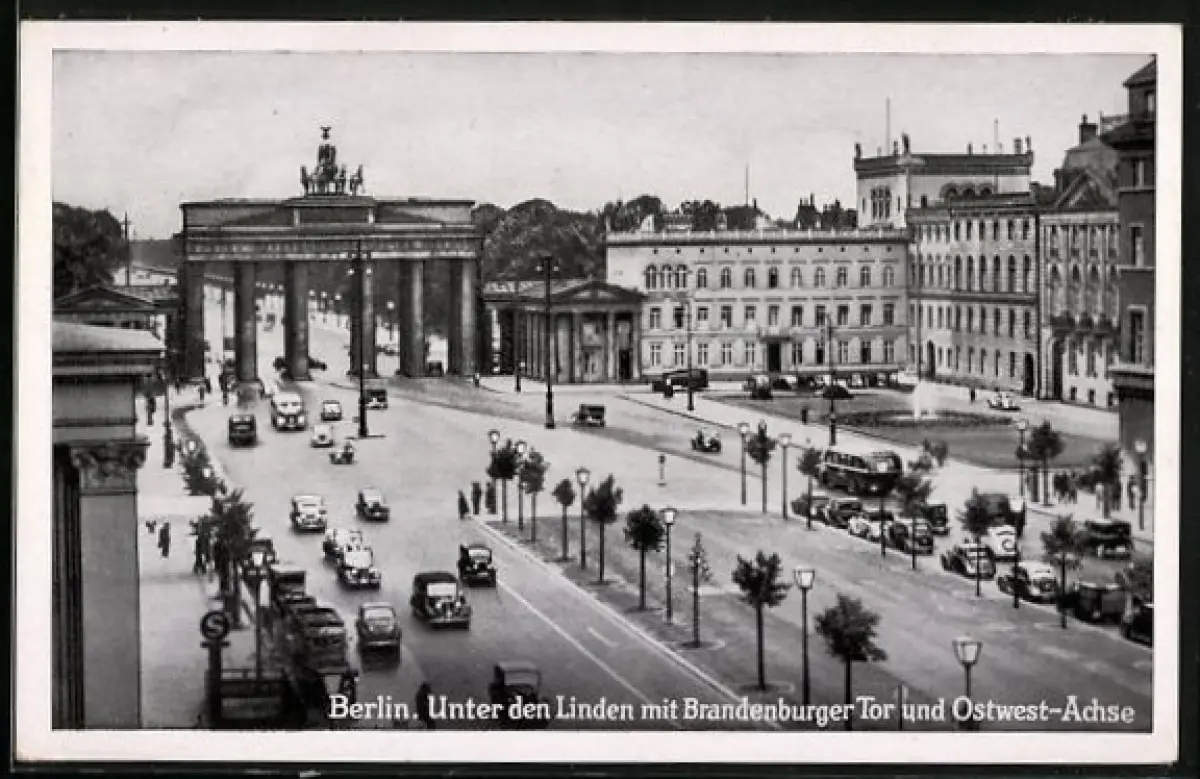 AK Berlin, Unter den Linden mit Brandenburger Tor & Ostwest-Achse