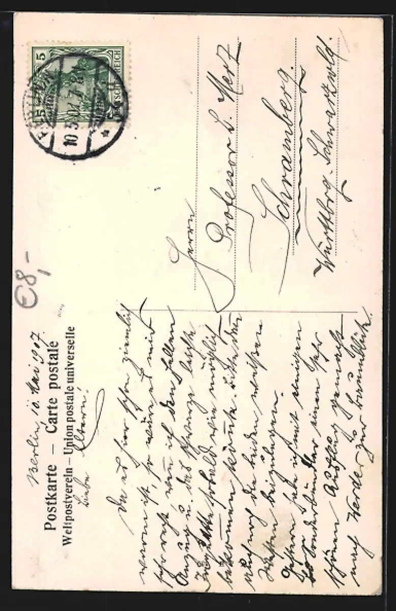 alte Ansichtskarte, gelaufen 1907, Stempelspur, guter Zustand