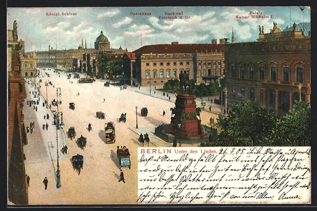 AK Berlin, Unter den Linden mit Reiterdenkmal, von oben gesehen