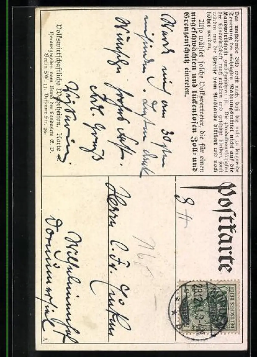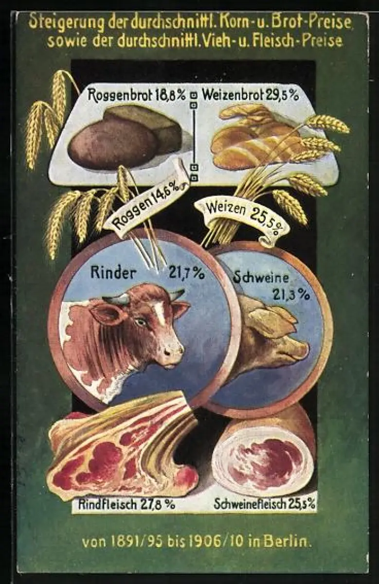 AK Berlin, Volkswirtschalftliche Wahrheiten - Steigerung der Korn-, Brot-, Vieh- und Fleischpreise von 1891 /95 bis 1906