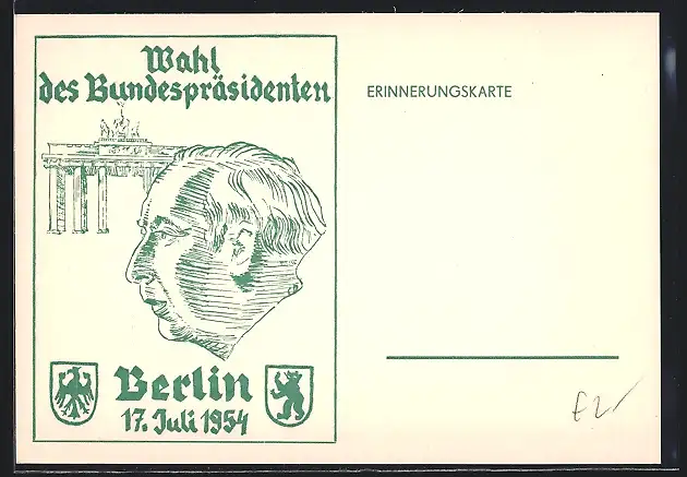 AK Berlin, Wahl des Bundespräsidenten 1954, Brandenburger Tor, gedruckt in brauner Farbe
