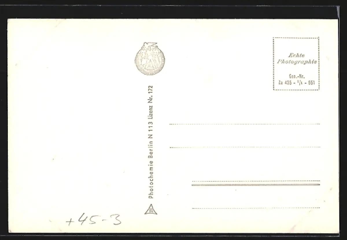Personenbezogene Daten auf der Rückseite der Karte wurden durch blauen Textmarker unkenntlich gemacht. Die blauen Stellen sind auf die Vorderseite durchgeweicht und wirken sich negativ auf das Postkartenfoto aus
