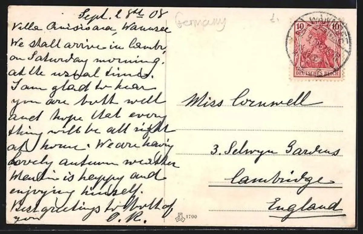 alte Ansichtskarte, gelaufen 1908, guter Zustand