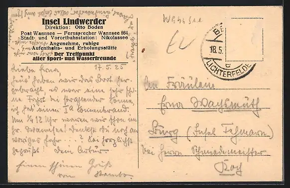 alte Ansichtskarte, gelaufen 1925, Briefmarke entfernt, rückseitig Oberflächenschaden, guter Zustand