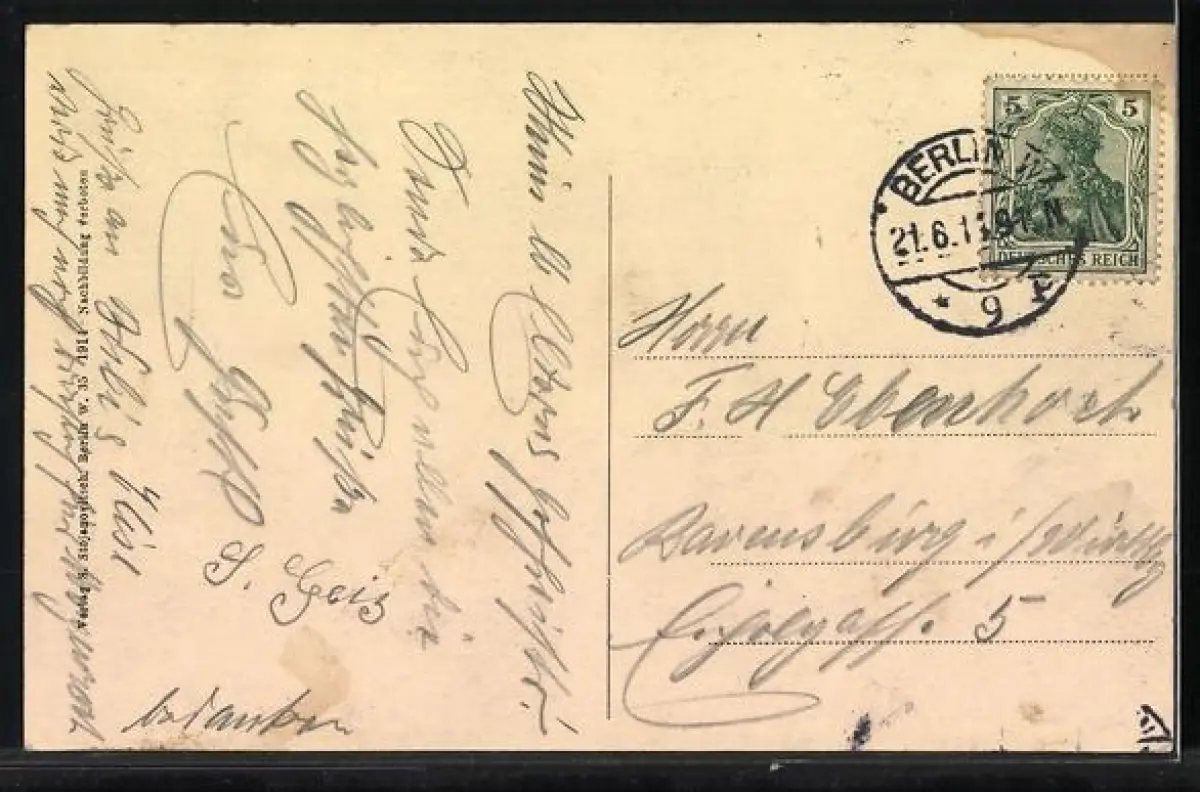 gelaufen 1911, Eckknick links oben, guter Zustand