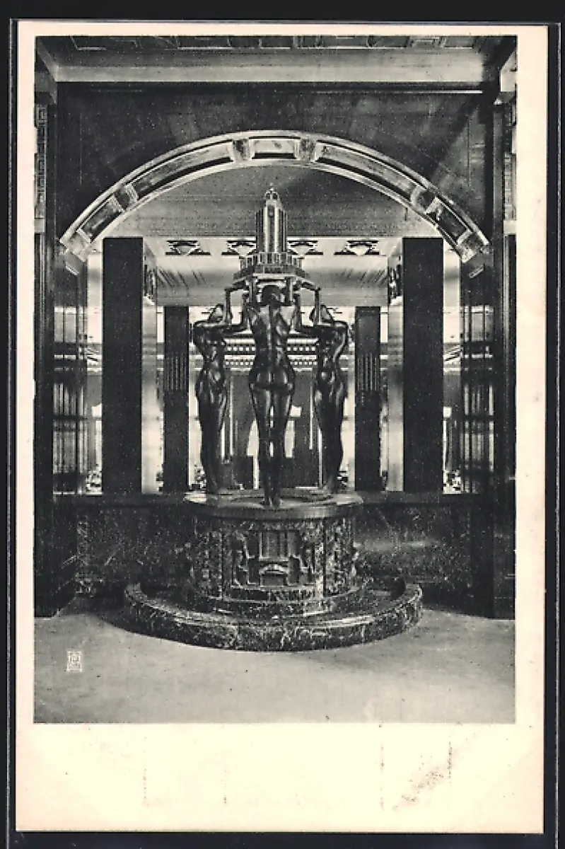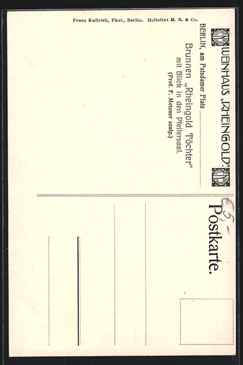 AK Berlin, Weingasthaus Rheingold am Potsdamer Platz, Brunnen Rheingold Töchter mit Blick in den Pfeilersaal