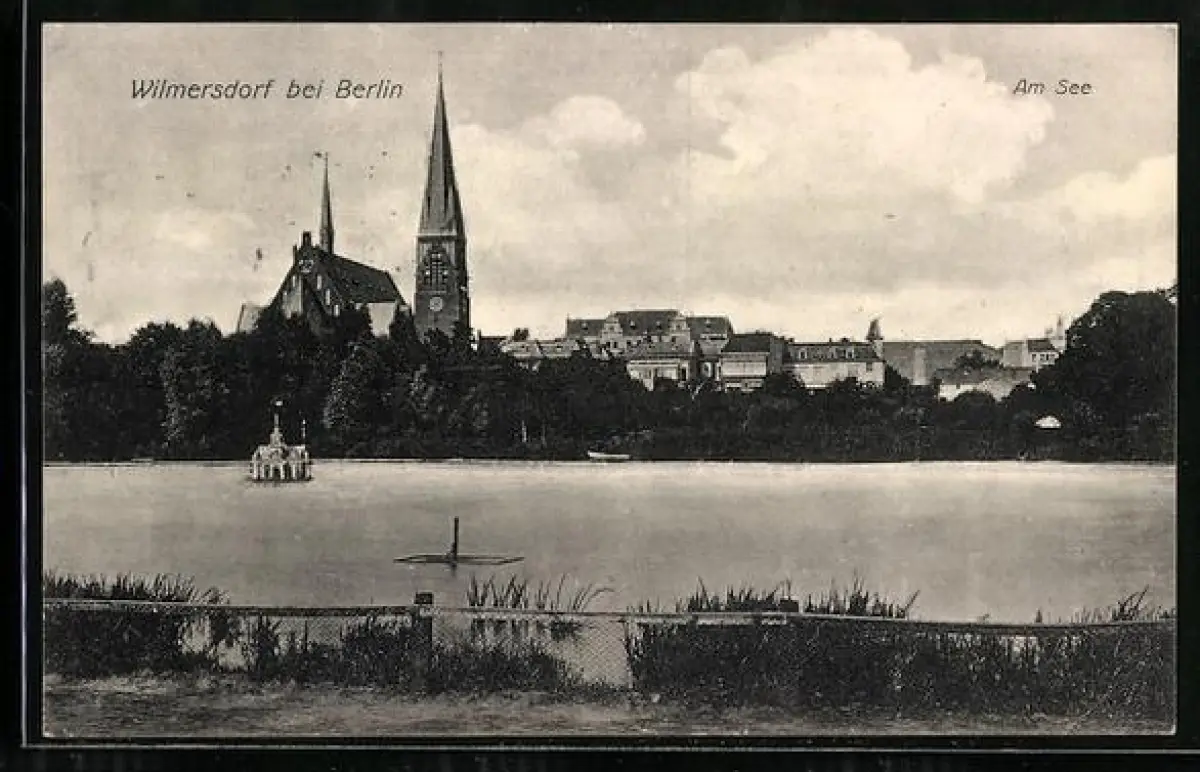 AK Berlin-Wilmersdorf, Am See, Kirche und Stadtansicht
