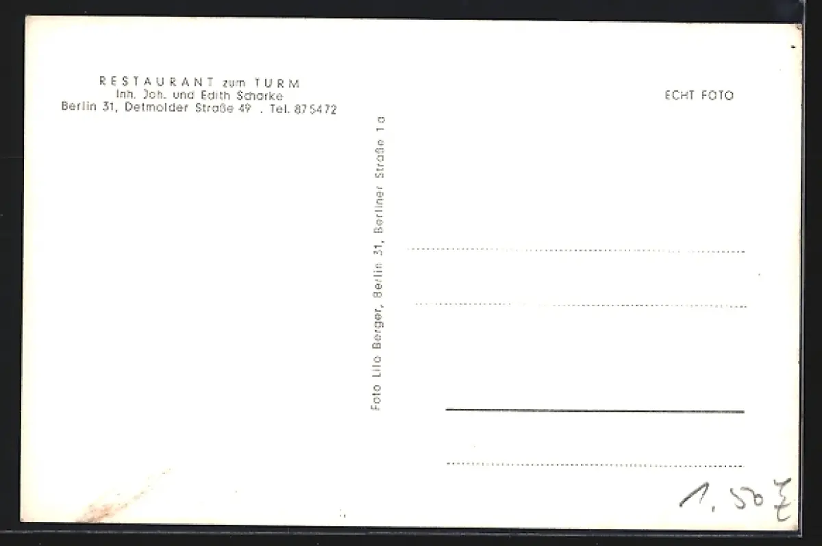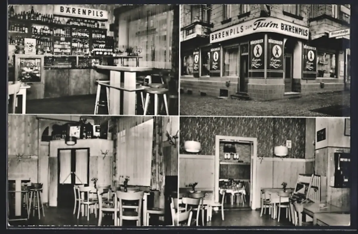 AK Berlin-Wilmersdorf, Restaurant zum Turm mit Innenansichten, Detmolder Strasse 49