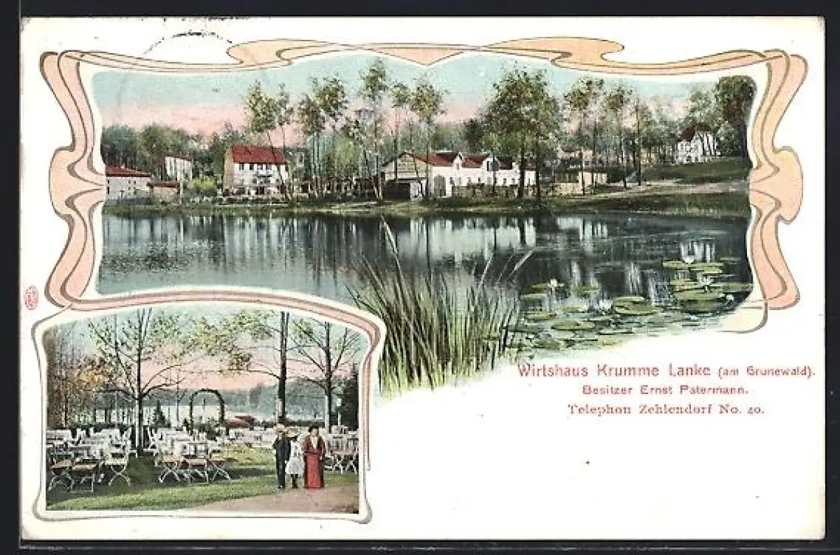 AK Berlin-Zehlendorf, Gasthof Wirtshaus Krumme Lanke, Garten