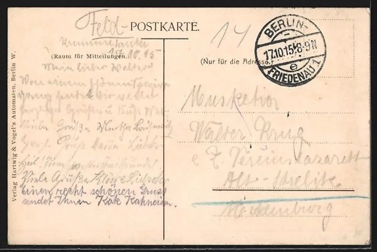 alte Ansichtskarte, gelaufen 1915 als Feldpost, Stempelspur, guter Zustand