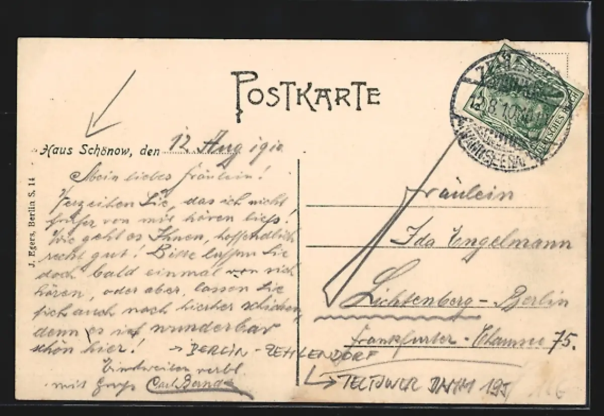 alte Ansichtskarte, gelaufen 1910, guter Zustand