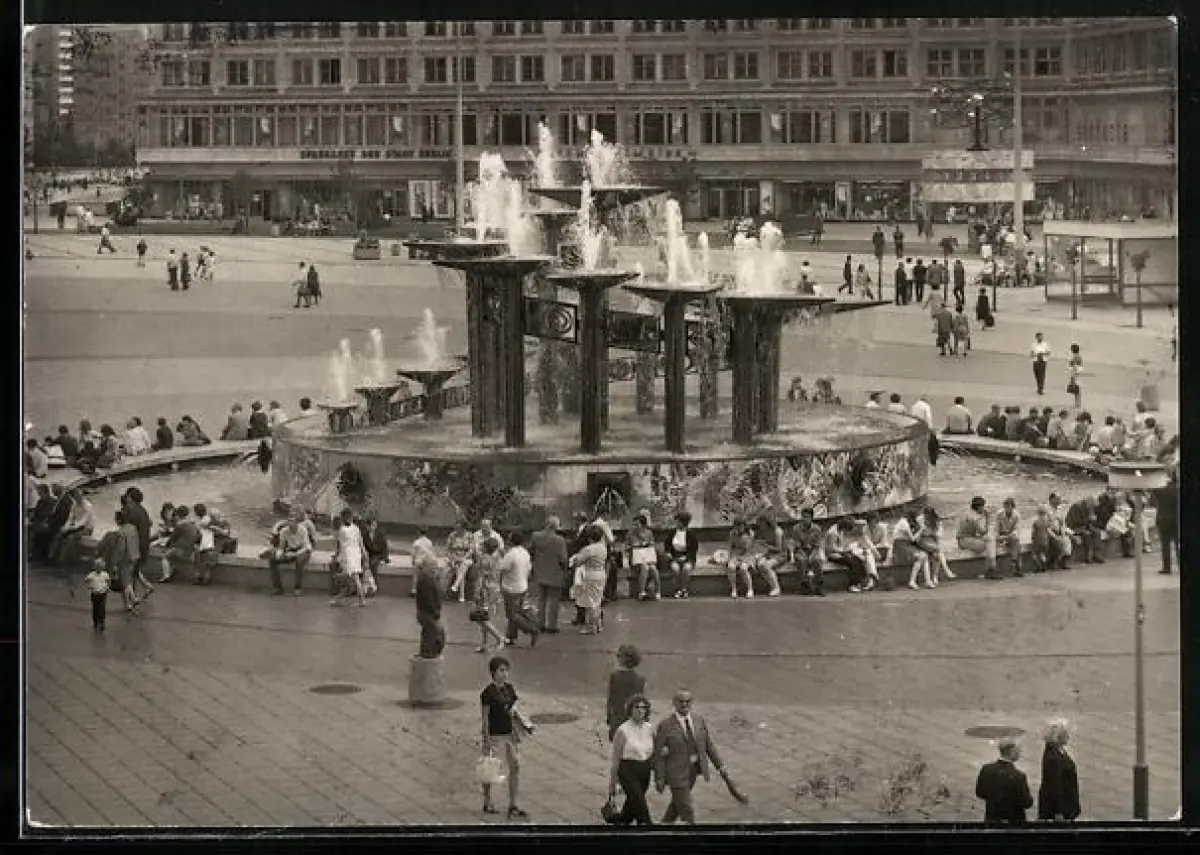 AK Berlin, moderne Architektur, Brunnen auf dem Alexanderplatz