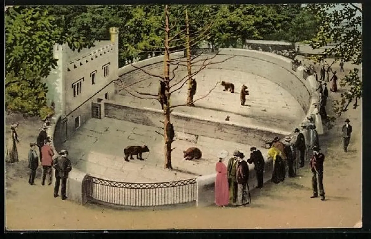 AK Bern, Bärengraben mit Besuchern aus der Vogelschau