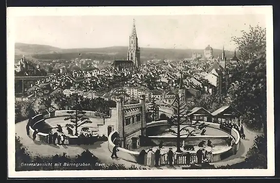 AK Bern / Berne, Generalansicht mit Bärengraben, Vue générale et la Fosse aux Ours