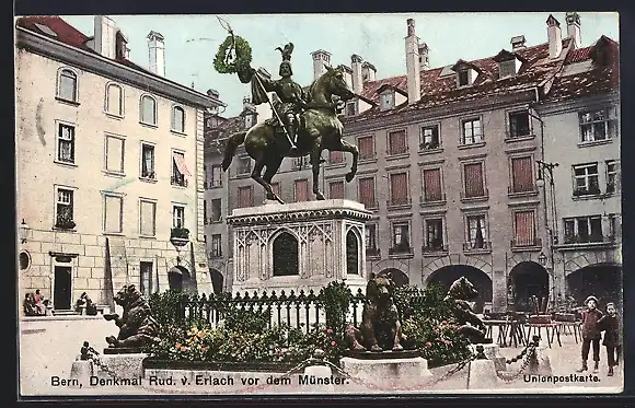 AK Bern, Denkmal Rud. v. Erlach vor dem Münster