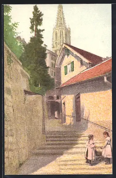 AK Bern, Die Fricketreppe mit Mädchen