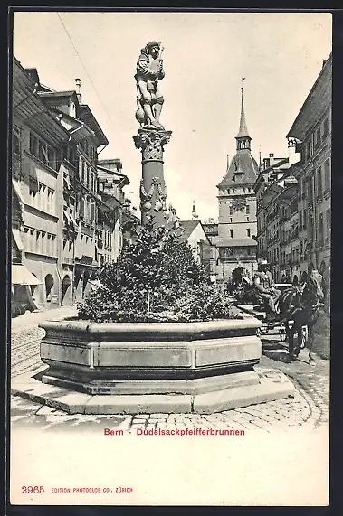AK Bern, Dudelsackpfeifferbrunnen mit Kutsche