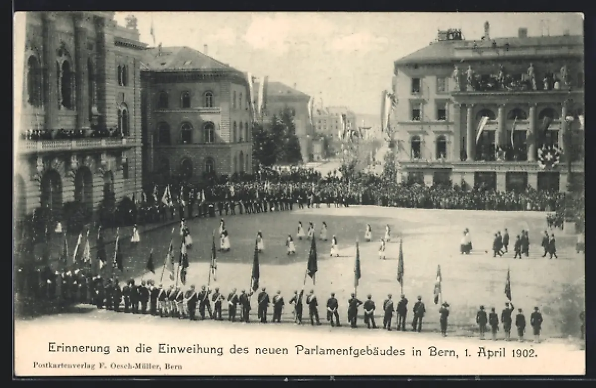 AK Bern, Einweihung des neuen Parlamentgebäudes 1902, Fahnenträger