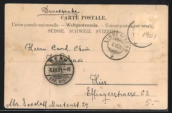 alte Ansichtskarte, gelaufen 1901, Stempelspur, guter Zustand