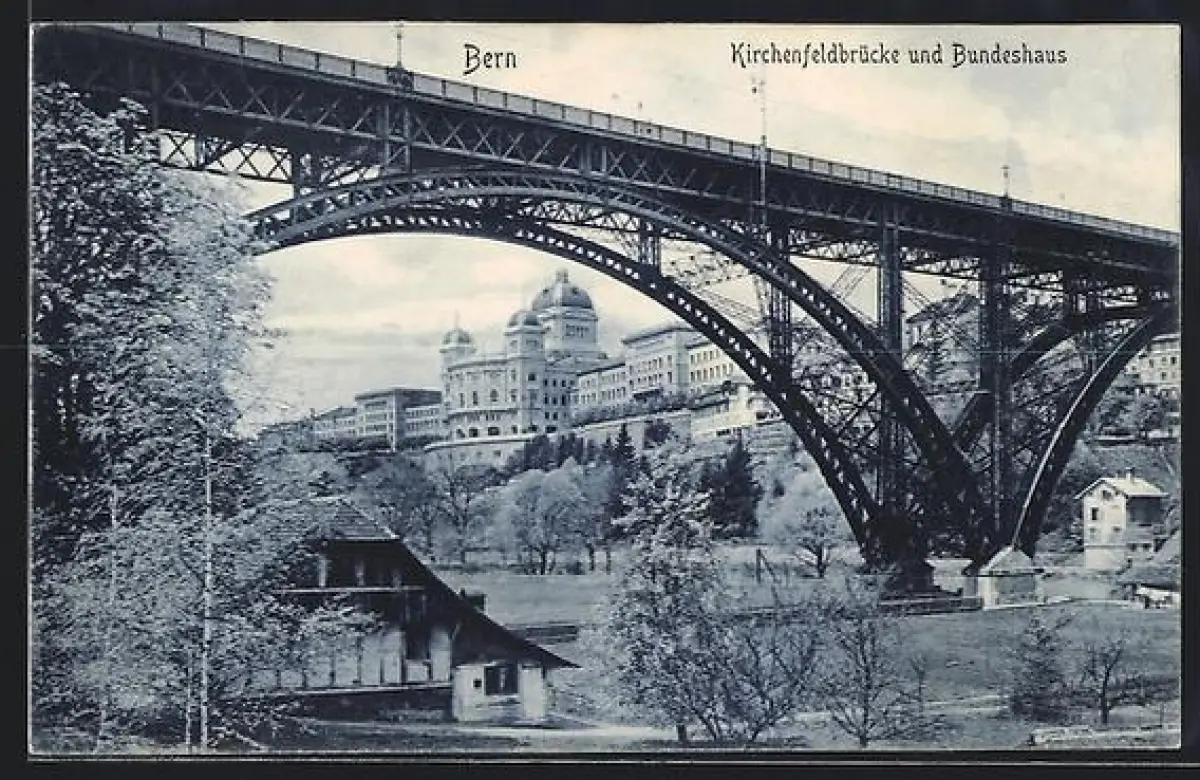AK Bern, Kirchenfeldbrücke und Bundeshaus