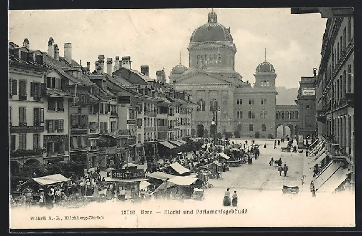 AK Bern, Markt und Parlamentsgebäude, Marktszene