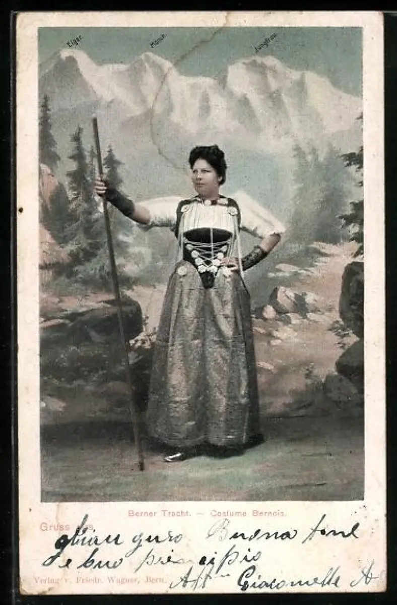 AK Berner Tracht, Frau in Schweizer Trachtenkleid
