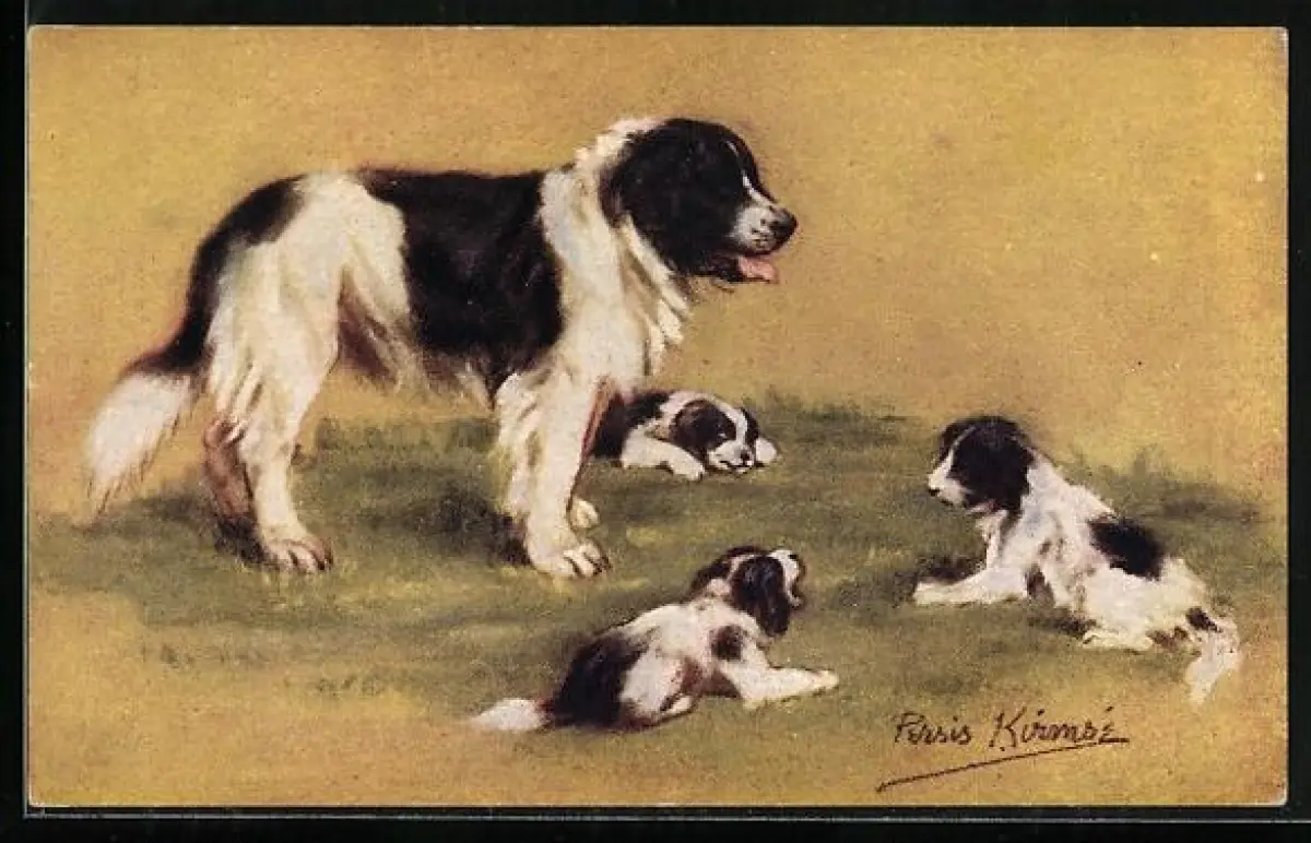 AK Bernhardiner mit seinen Welpen afu einer Wiese