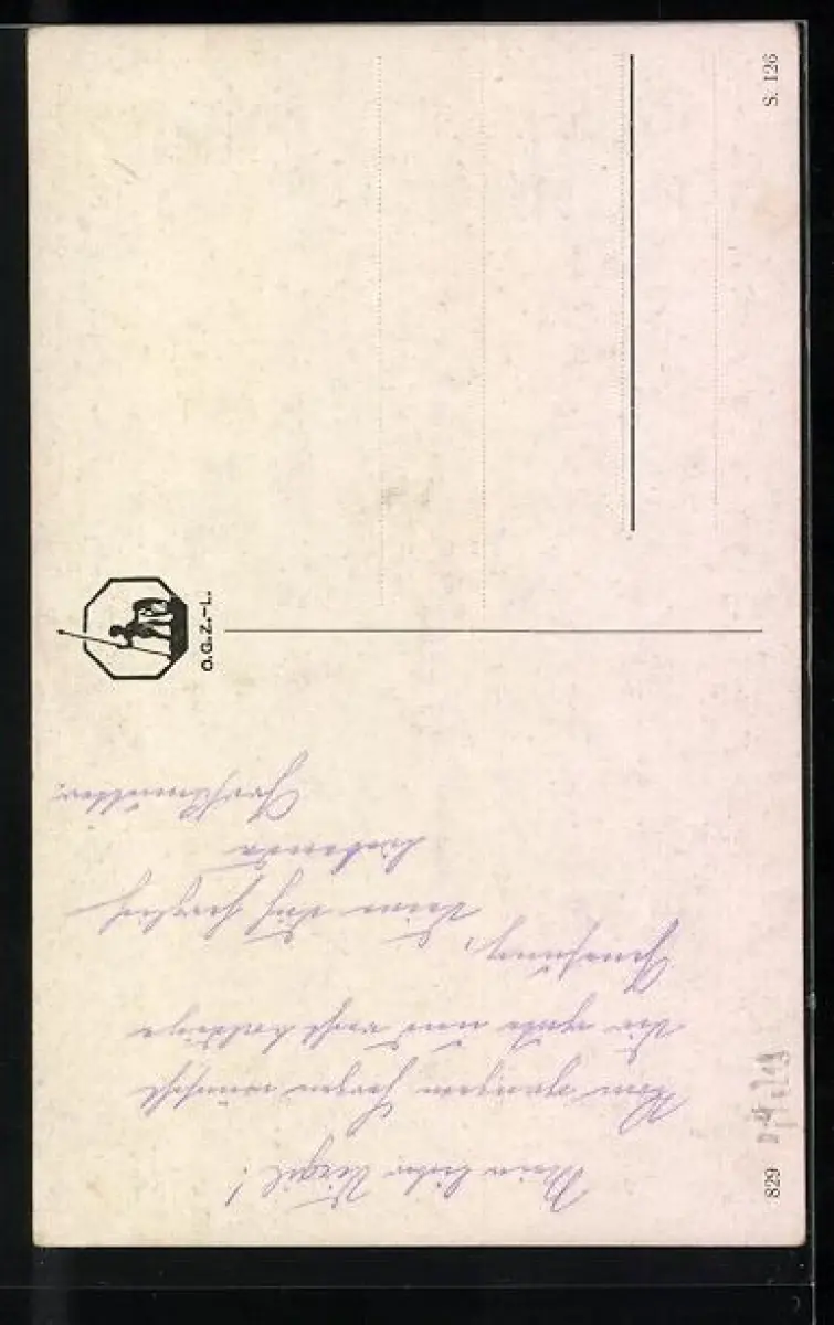 Personenbezogene Daten auf der Rückseite der Karte wurden durch blauen Textmarker unkenntlich gemacht. Die blauen Stellen sind auf die Vorderseite durchgeweicht und wirken sich negativ auf das Postkartenfoto aus