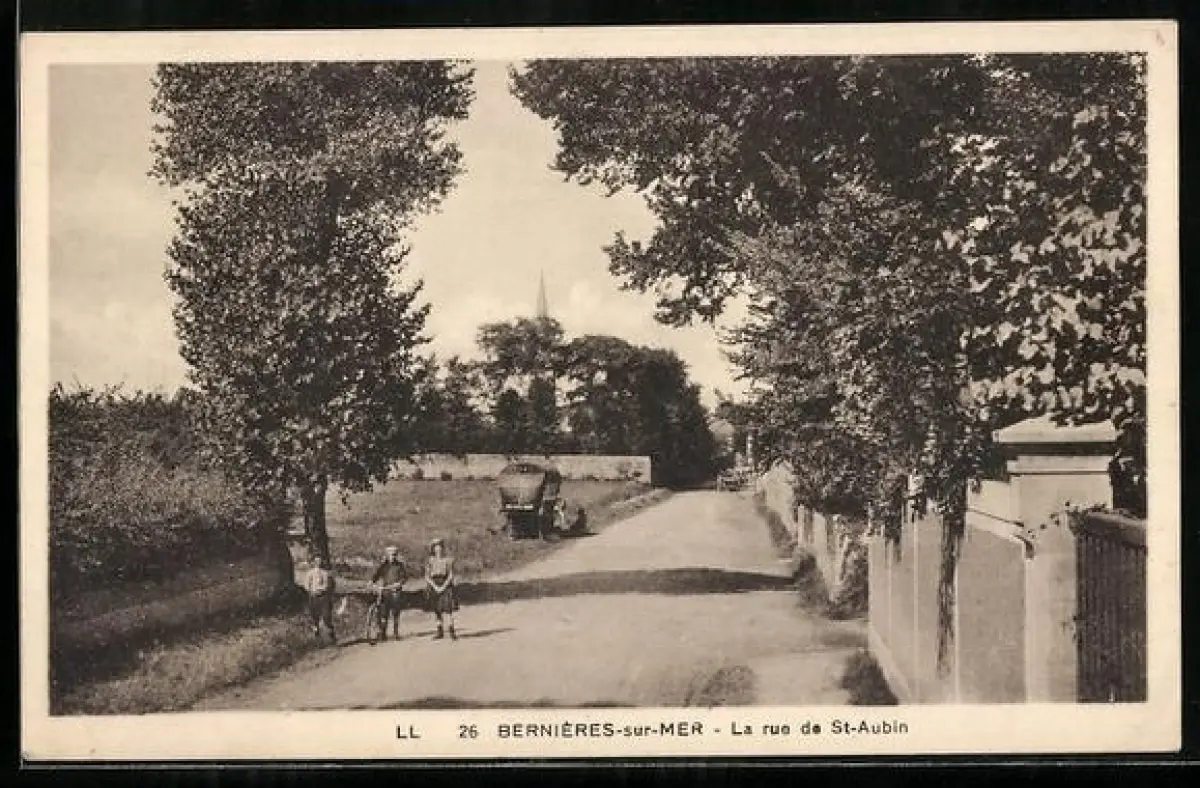 AK Bernières-sur-Mer, La rue de St-Aubin avec enfants et voiture sur le chemin