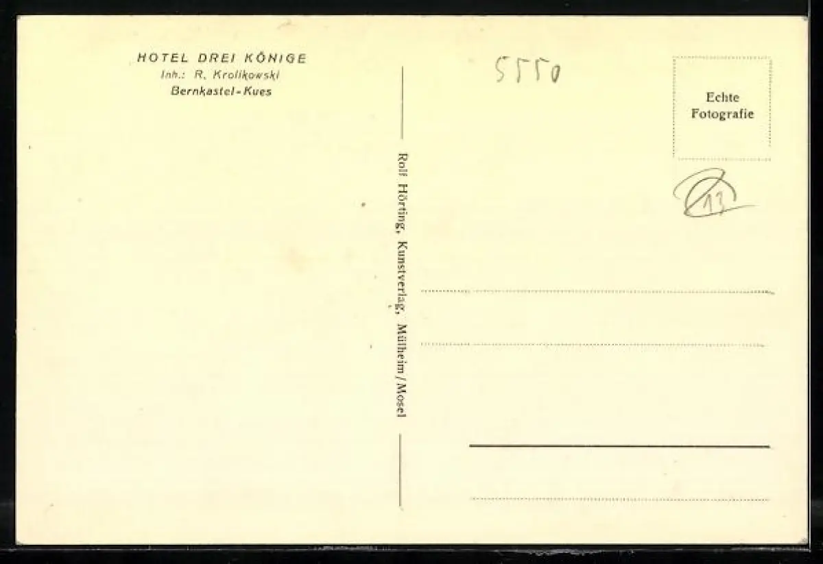 AK Bernkastel-Kues, Alte Fachwerkhäuser am Markt, Hotel Drei Könige, Inh. R. Krollkowski