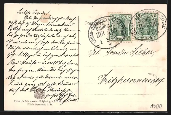 alte Ansichtskarte, gelaufen 1908, guter Zustand