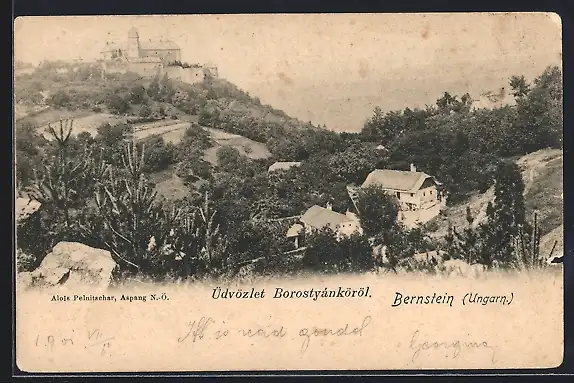 AK Bernstein, Ortsansicht mit Blick zur Burg