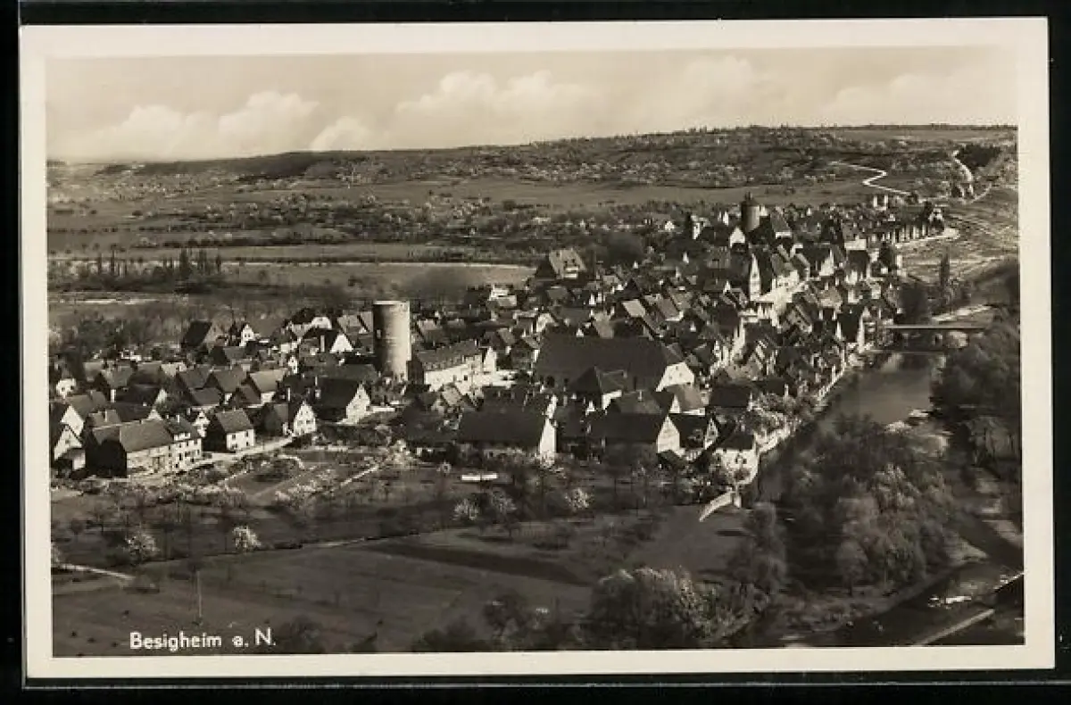 AK Besigheim a. N., Stadtansicht, Turm, Fluss