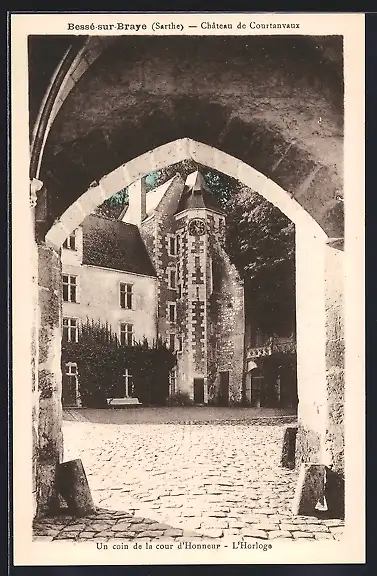 AK Besse-sur-Braye, Chateau de Courtanvaux, Un coin de la cour d`Honneur, l`Horloge