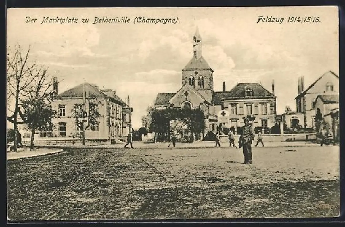 AK Betheniville /Champagne, Soldaten auf dem Marktplatz