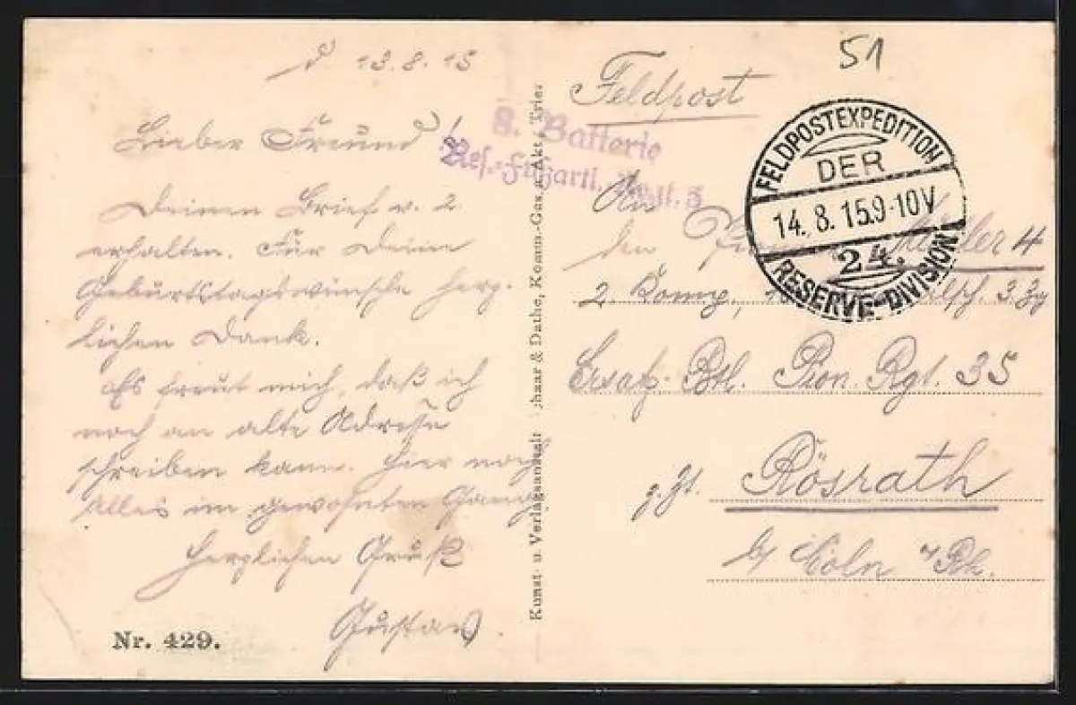 alte Ansichtskarte, gelaufen 1915, guter Zustand