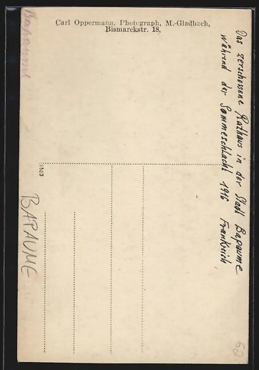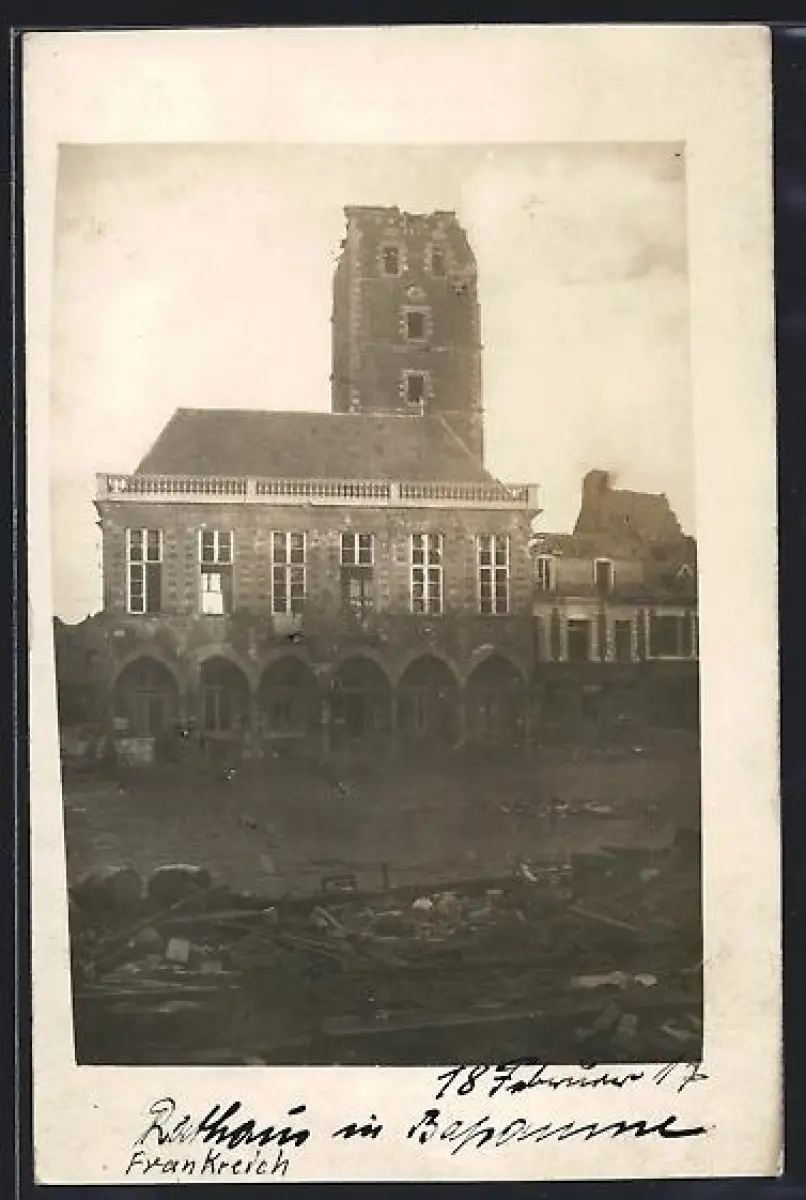 AK Béthune, Hôtel de Ville détruit après un bombardement